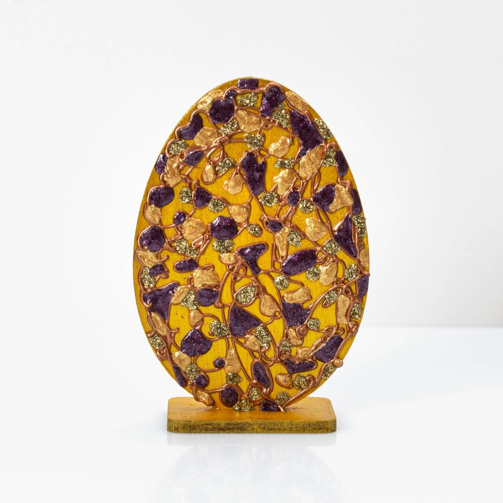 Ou din placaj de lemn, pictat manual cu culori acrilice de contur. Poate fi folosit ca decoratiune de Paste. Produsul este unicat.